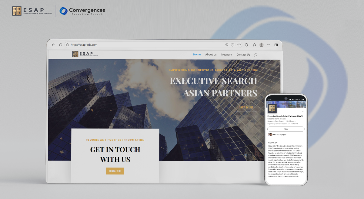 Convergences announced an official website and LinkedIn page of Executive Search Asian Partners (ESAP), an alliance of premier executive search and HR advisory firms to connect more closely with businesses and talents across Asia and Europe, helping organizations find the best-fit leaders for their strategic needs.